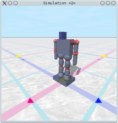 Experiments are performed in simulation using a dynamics simulator ODE (Open Dynamics Engine). The dynamics simulation is calculated with a time step 0.2 [ms].