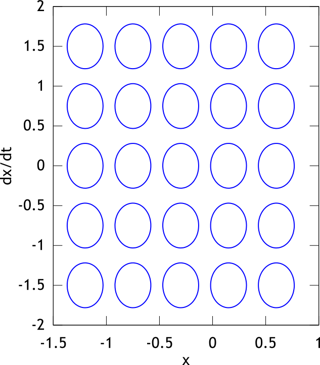 Of course, N is 2 in the mountain-car task. You can investigate the upper and the lower bound in the random action test. In this task, let us use 5x5 basis functions. Thus, we generate the basis functions of NGnet as follows: